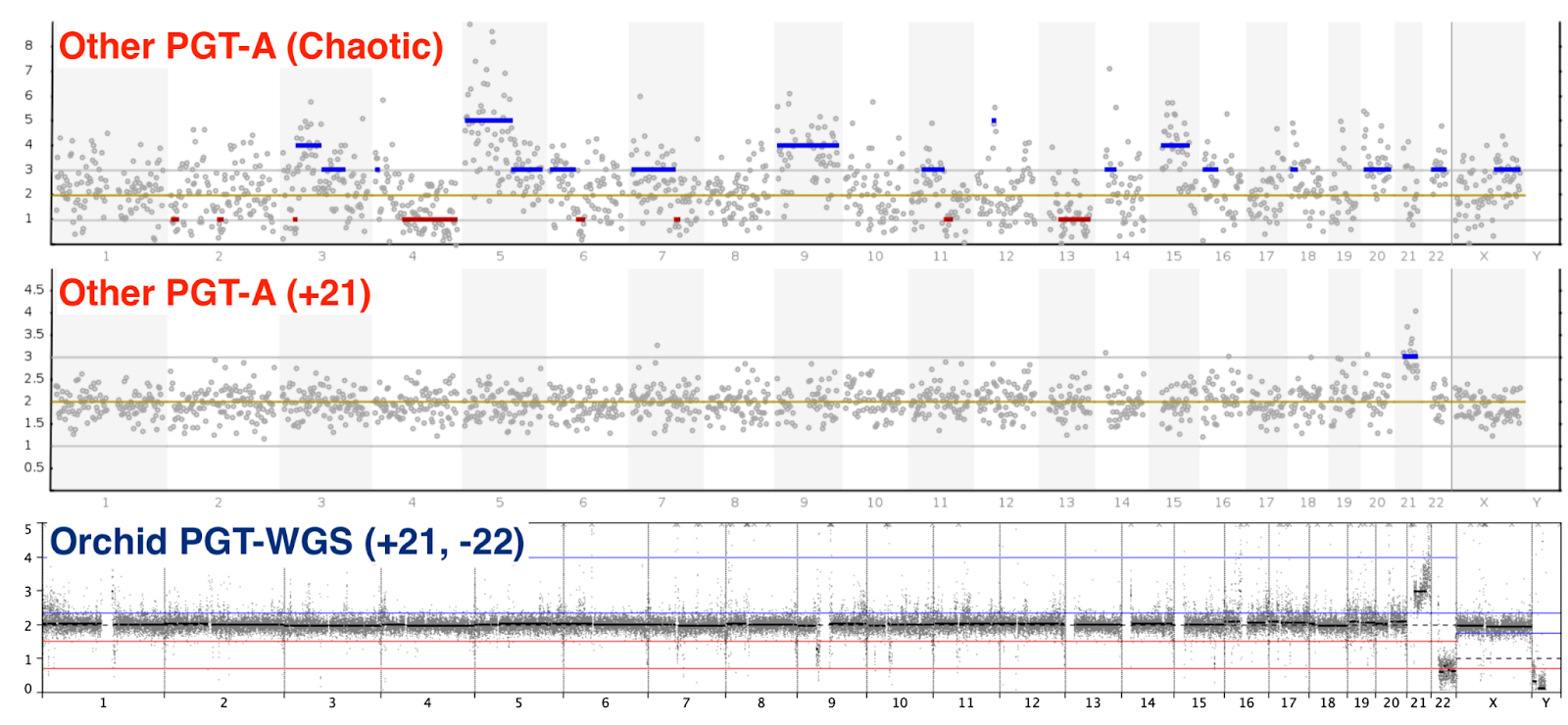 After requesting the raw data, we could visually see the higher resolution and more consistent genome coverage in the PGT-WGS results, and felt more confident we were discarding only embryos with true aneuploidy.