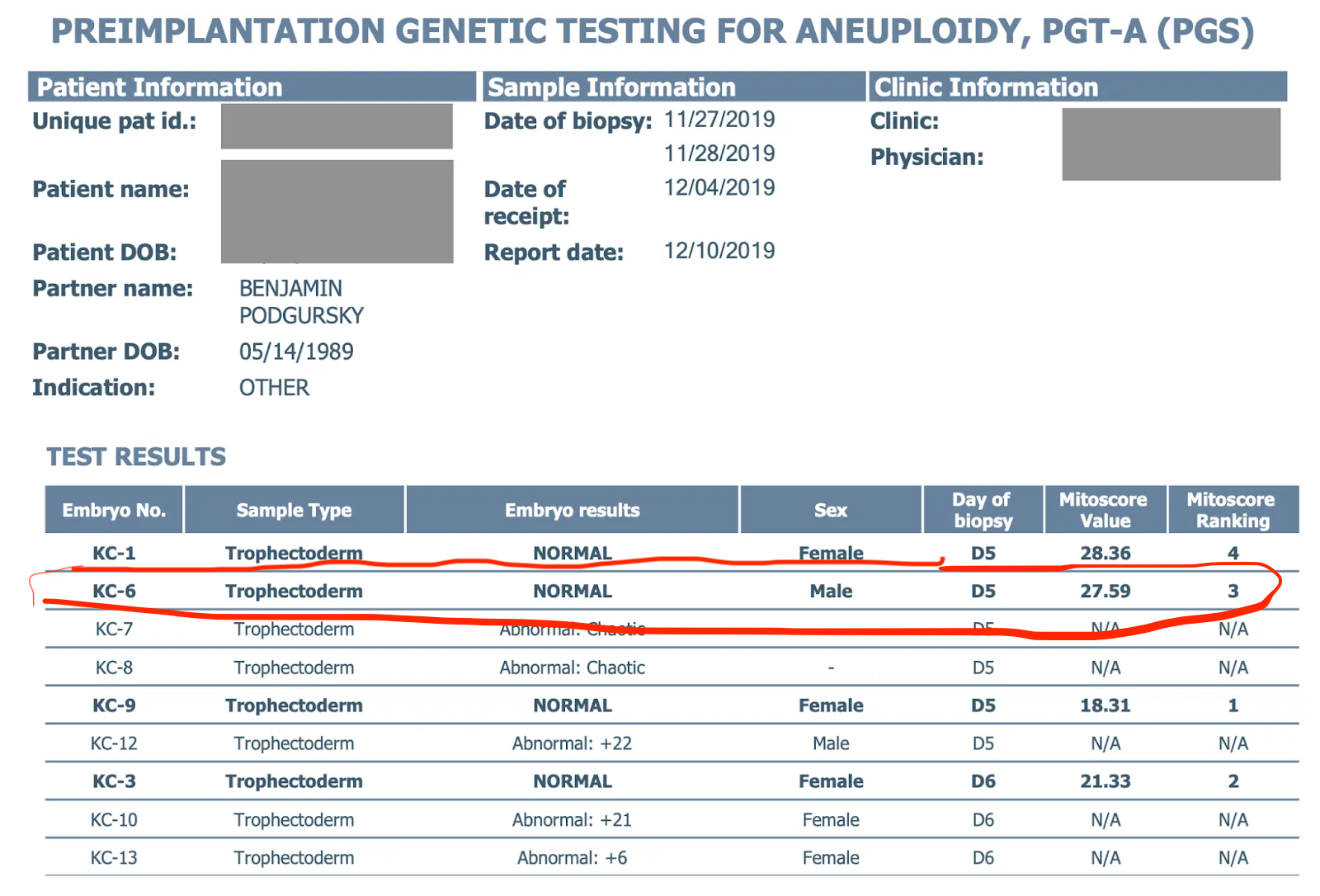 (I’m including minimally-redacted versions of the embryo data, aneuploidy plots, and PGT results from our cycles in this post. Please reach out if there’s additional information you’d like to see).