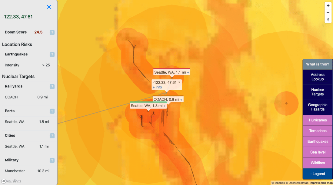 Alright, inspired by recent events, I’ve spent a bit (well, a lot) of time over the past couple months scratching an itch called “figuring out where in the US is safe from Armageddon.”